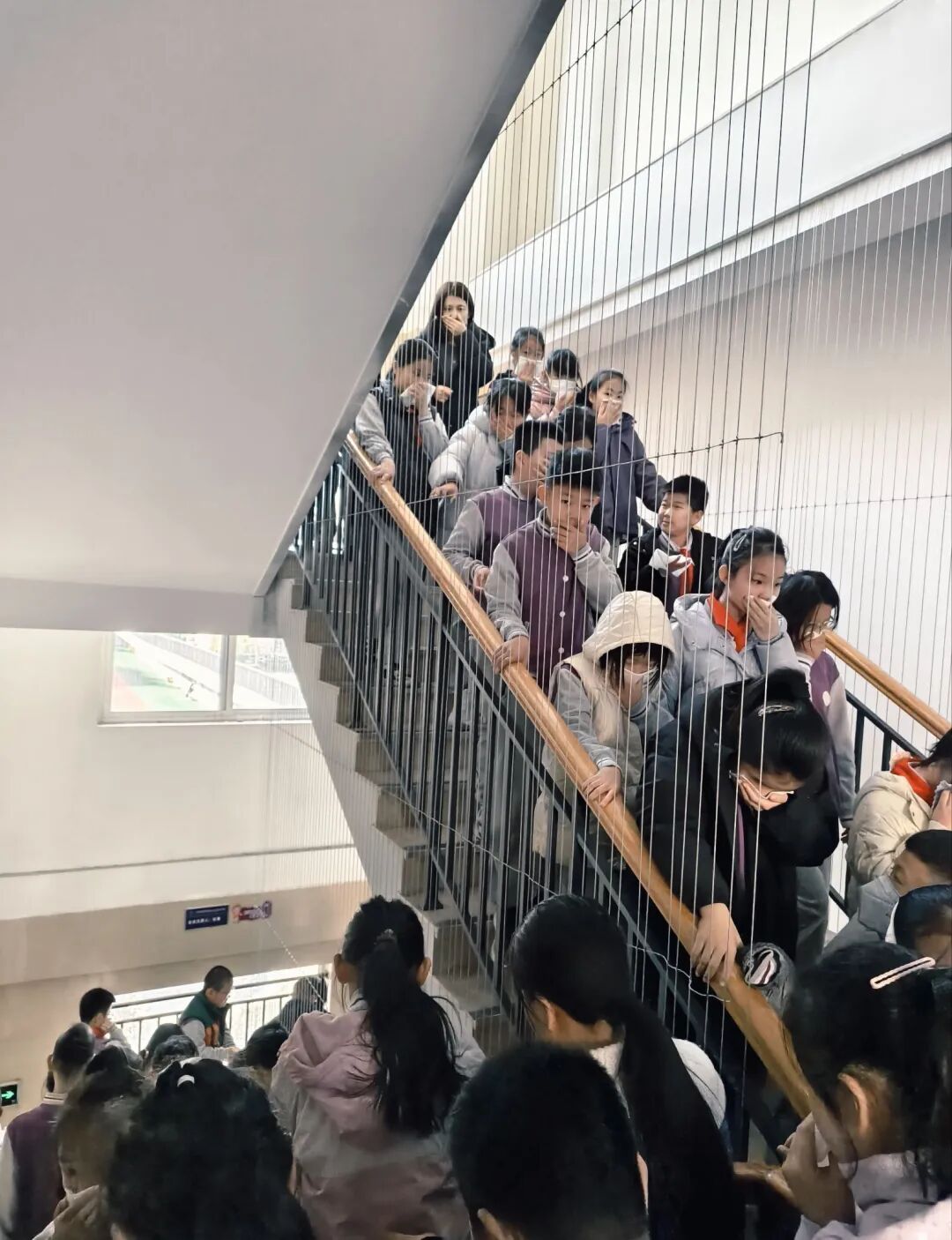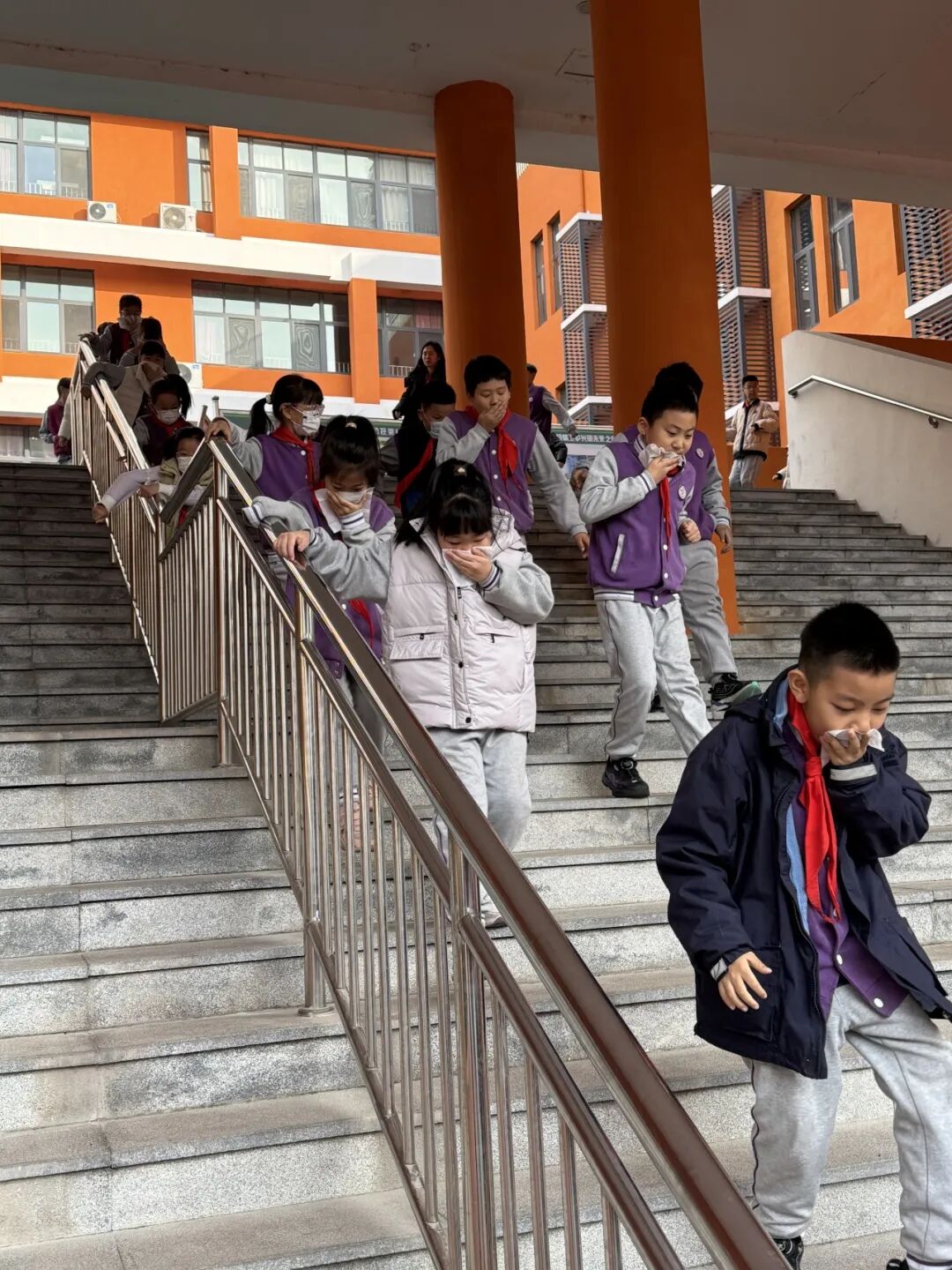 演练前,学校已向师生普及火灾逃生技巧、疏散注意事项及校园疏散路线,让大家对演练流程和安全要点做到心中有数。随着演练信号正式发出,各班级师生在班主任及任课教师的有序引导下,迅速做出反应:同学们弯腰低姿,用湿毛巾或衣物紧紧捂住口鼻,沿着指定疏散通道快速前行;撤离过程中,大家严格遵守纪律,不推挤、不喧哗、不逗留,全程保持安全间距,展现出良好的应急素养。