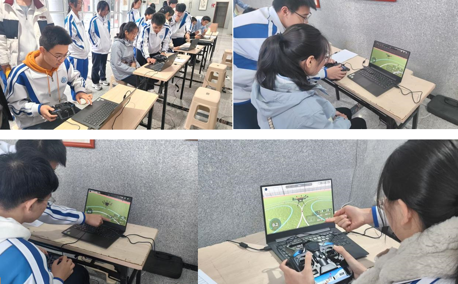 无人机仿真飞行赛同样精彩,经过赛前专项培训,同学们熟练操控学校统一设备,在直线飞行、精准定位、8字绕飞等任务中沉着应对,激烈角逐让现场气氛持续高涨,大家在实操中锤炼技能,在交流中共享经验,充分展现了出色的实践能力与创新思维。