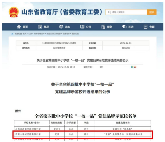 省级荣誉+1!济南大学城实验高级中学获评山东省“一校一品”党建品牌