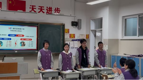 济南高新区伯乐实验学校八年级2班成功举办“AI增强/削弱人类创造力”主题辩论赛