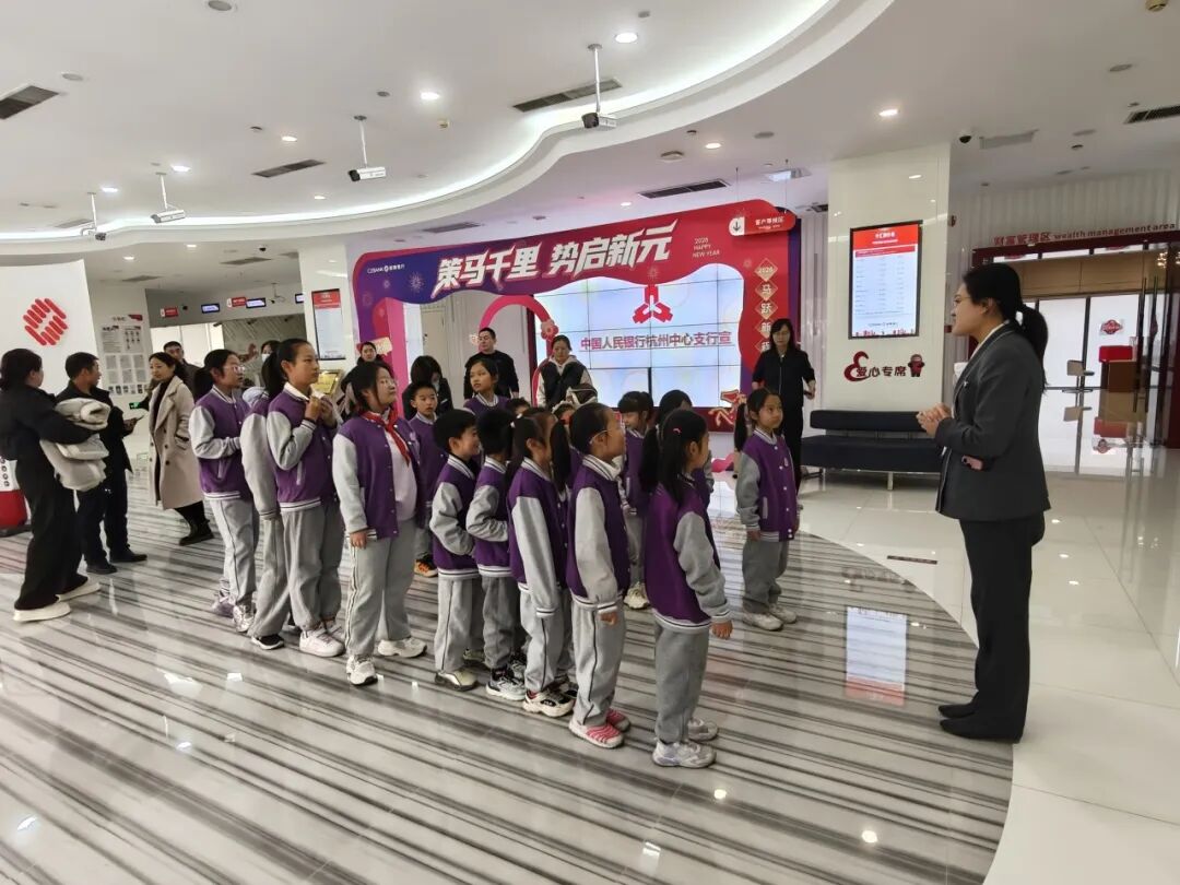 12月20日,济南高新区伯乐实验学校一年级三班成长共同体——“星星伙伴团”“太阳花组”“小太阳组”“乘风组”的同学们,手拉着手,怀揣着对“钱”的好奇与疑问,走进了浙商银行研学实践基地,开启了别开生面的“小小银行家”财商启蒙之旅。
