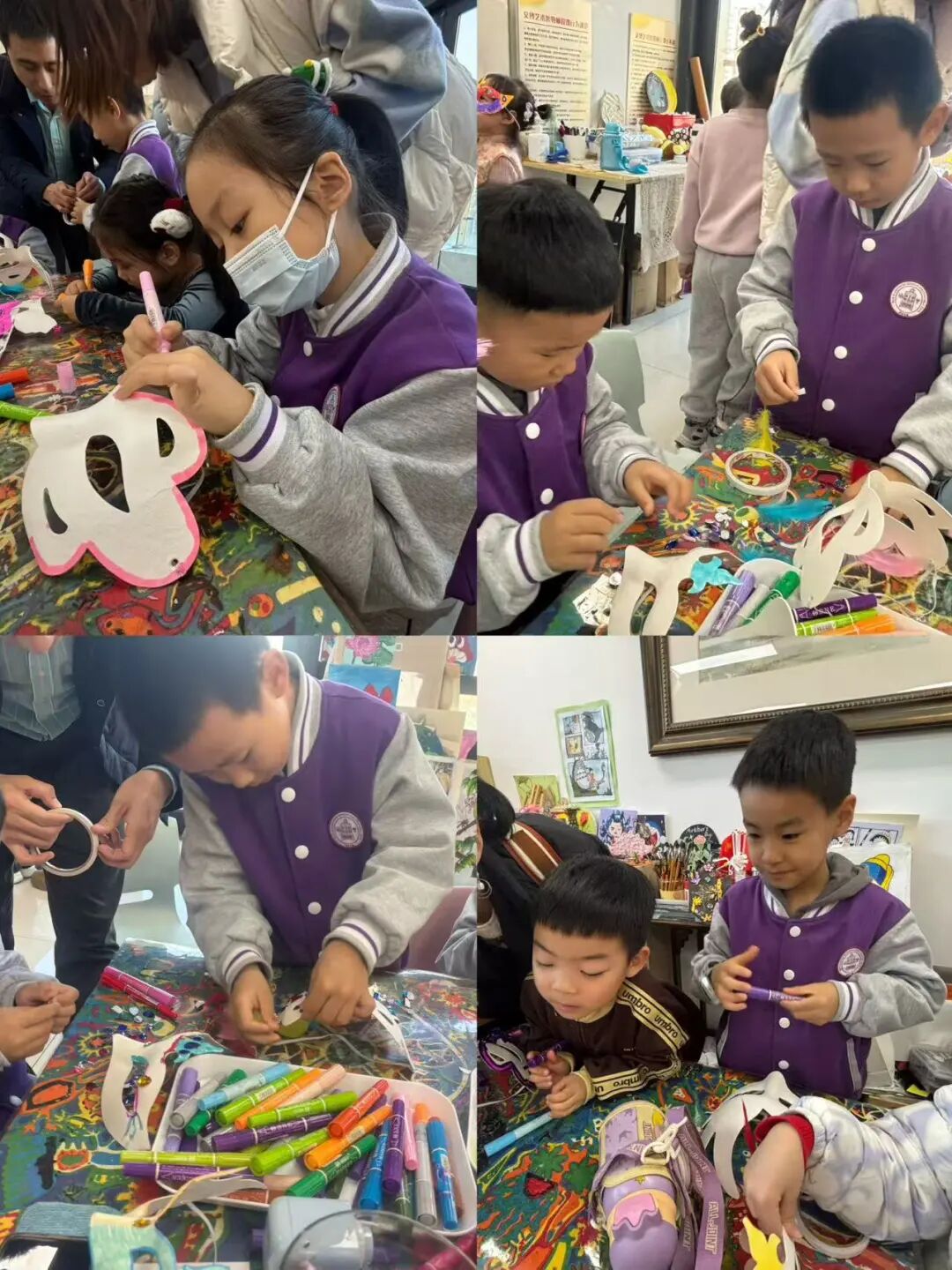 魔法工坊里更是充满惊喜,大家拿起画纸、彩笔和宝石,在各种形状的面具上图上彩色的花纹,不一会儿,老虎面具、兔子面具、公主面具就诞生啦,戴在脸上走一走,小朋友们都变成了“小魔法师”。红果墨韵环节也超有意思,大家在糖葫芦造型的彩纸上,用彩笔写下“冬至快乐”“天天开心”的祝福语,一张张红彤彤的纸,满是甜甜的心意。