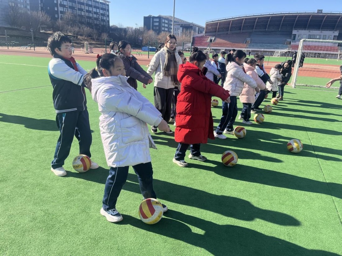 带着从讲座和实验室获得的知识,孩子们来到了操场,参加专门设计的防止脊柱侧弯体育活动。山东体育学院的学生担任教练,带领孩子们进行了一系列针对性训练。活动包括立定跳远、排球垫球和接力跑等项目,每个项目都融入了脊柱保护的要点。