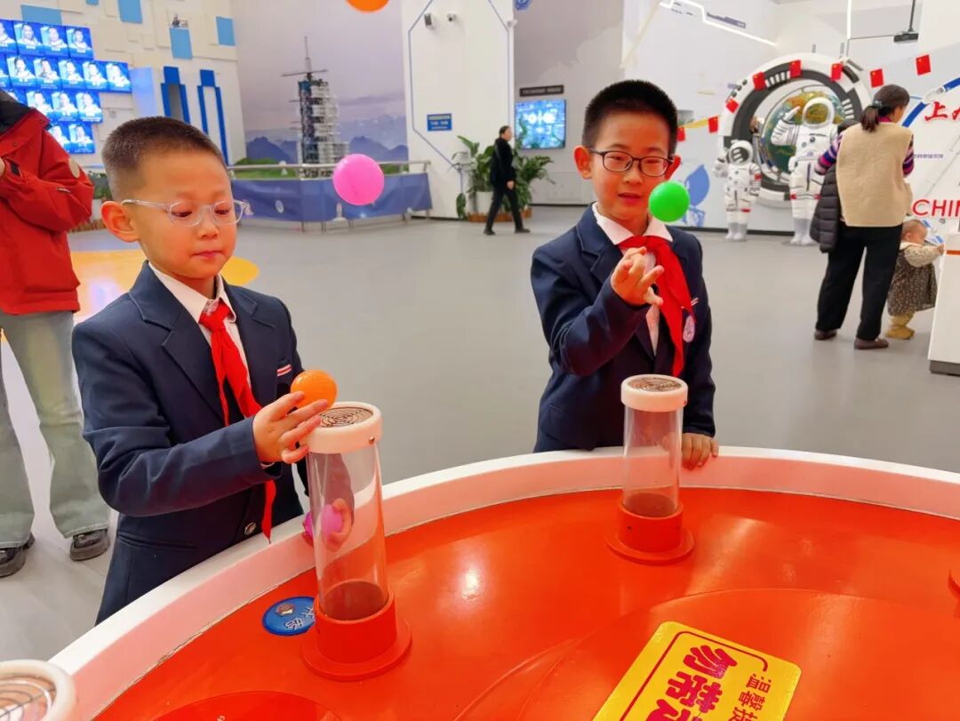 踏入科技馆展厅,光影交错的科技装置、趣味十足的互动展项瞬间点燃了同学们的探索热情。在伯努利原理体验区,当工作人员启动装置,气流裹挟着彩色小球悬浮在空中时,孩子们纷纷瞪大好奇的眼睛,迫不及待地伸手感受气流的力量。“老师,小球为什么不会掉下来呀?”“是不是有隐形的绳子在拉着它?”面对同学们的连环提问,老师结合实验现象耐心讲解“流速越大、压强越小”的科学原理,还鼓励大家反复尝试调整气流大小,观察小球的变化。亲手操作的体验让抽象的科学知识变得直观易懂,同学们在惊叹之余,牢牢记住了这一奇妙的物理现象。