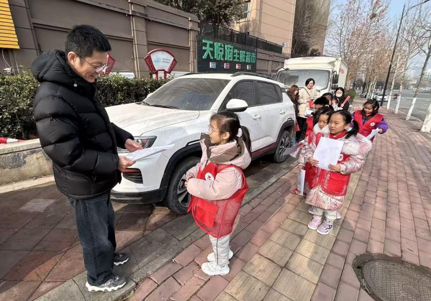 活动中,同学们分工协作、各尽其责。作为文明宣传小使者,大家手持宣传资料,用稚嫩又坚定的声音,向社区居民普及文明公约、环保知识,把文明理念传递到每一个角落。