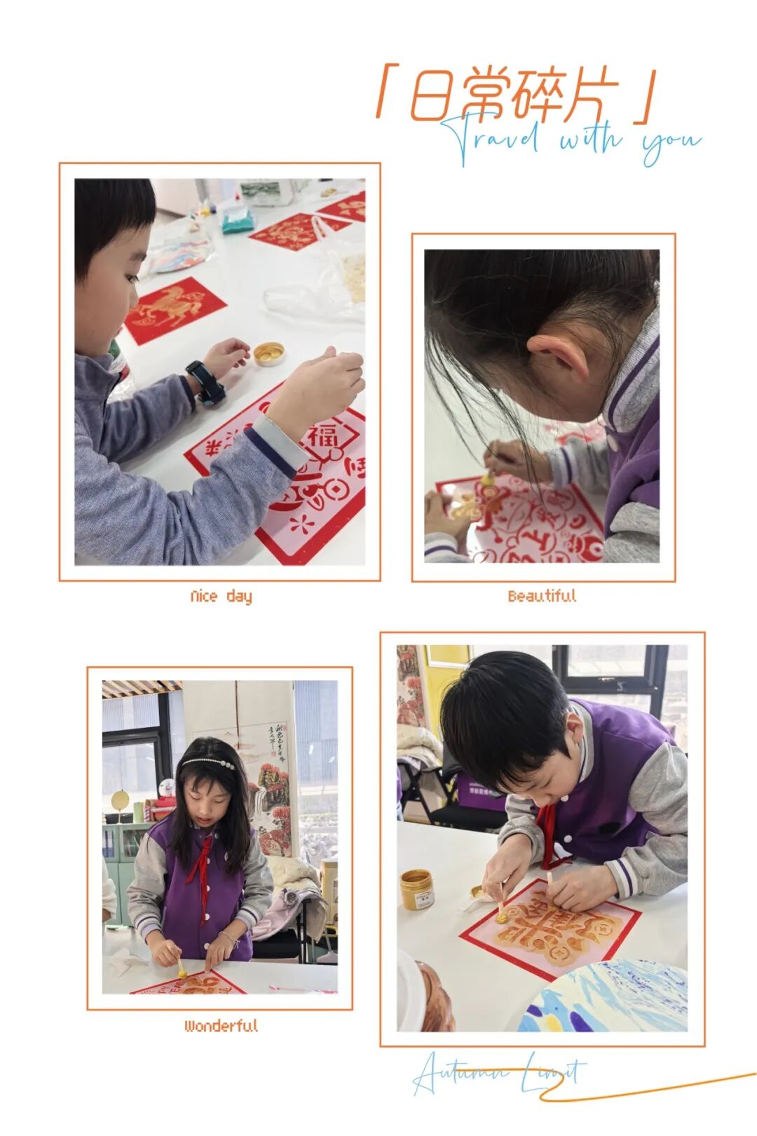 这不仅仅是一次手工艺的体验,更是一场关于美、关于合作、关于文化认同的温暖对话。孩子们彼此欣赏作品,交流心得,笑语盈盈;有人主动为同伴稳住模板,有人细心传递彩料,互助之情悄然流淌。在这里,传统文化褪去了历史的尘埃,化作可触、可感、可创造的生动实践,在指尖绽放温度,于心间留下印记。