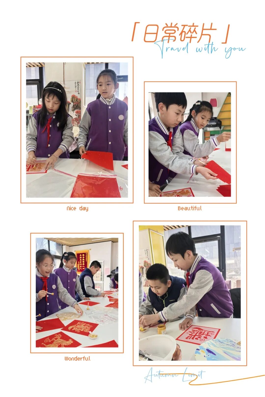 冬日午后,暖阳透过明净的窗棂,洒在社区活动中心的长桌上。济南高新区伯乐实验学校四年级二班“晴天队”的孩子们正俯身其间,或轻按拓印纸,或凝神滴漆液,一场“非遗传承迎新年”的传统文化体验活动,正悄然展开。朱红墨香与斑斓彩韵交织,童言笑语与融融年味相融,孩子们以稚嫩的双手,在时光的长河中采撷传统之美,编织出连接古今的绚丽纽带。