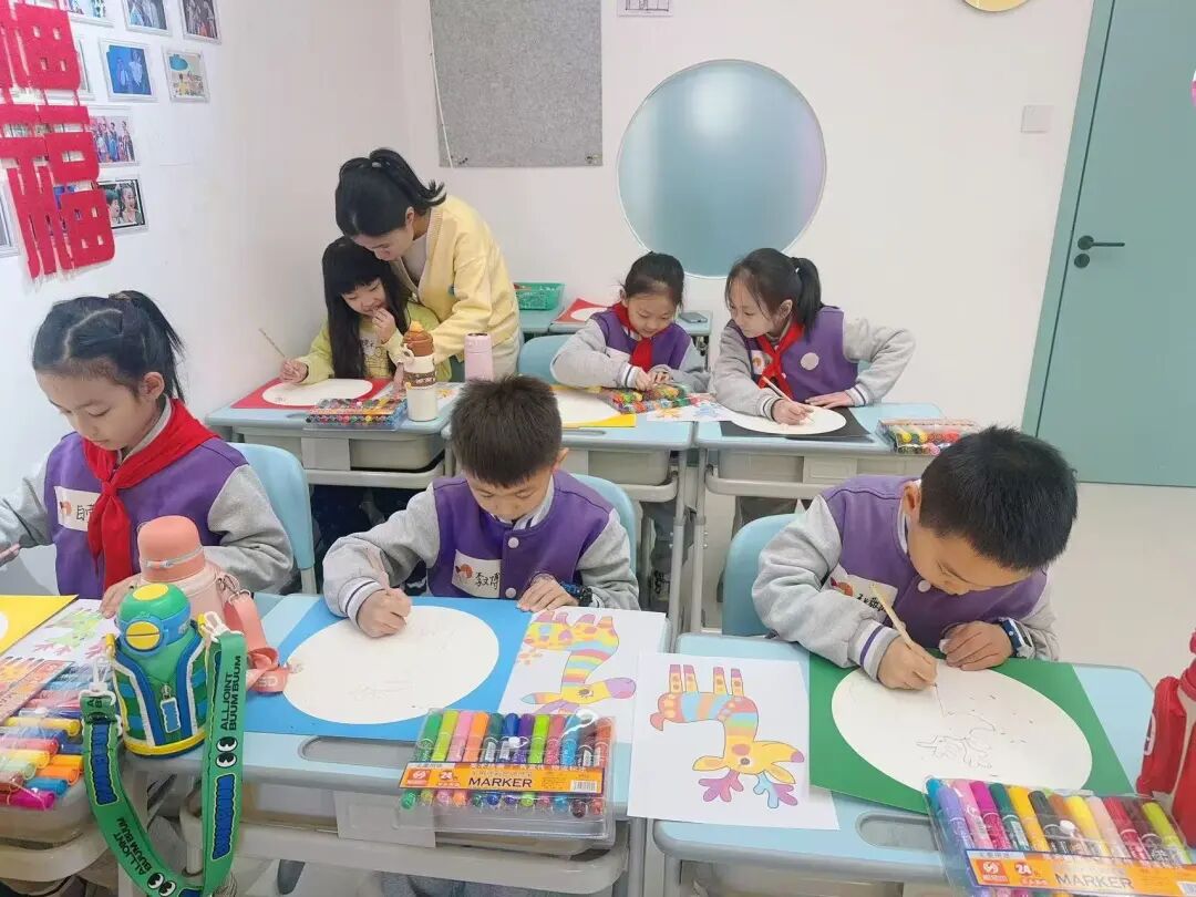 随后的绘画体验环节,孩子们用手中的画笔自由抒发心中的想象。洁白的画纸上,渐渐浮现出灿烂的太阳、彩色的房屋、微笑的动物,还有他们眼中充满童趣的世界。每一笔涂抹,不仅是对色彩的感知,更是对内心感受的真诚表达。他们时而专注创作,时而轻声交流想法,在互动的过程中,不仅激发了创意,也加深了彼此的默契与合作意识。