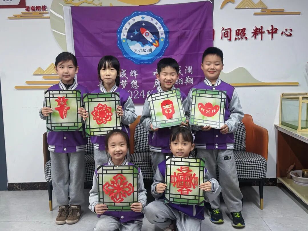 有人剪出生动的福字窗花,有人裁出灵动的花鸟纹样,有人剪出福意满满的元宝样,看着孩子们专注的拿着小剪刀,剪出稚嫩可爱的图案,互相分享技巧,交流创意,欢声笑语萦绕在旁,心里瞬间被暖意填满。原本普通的红纸,在指尖化作一幅幅饱含心意的作品。
