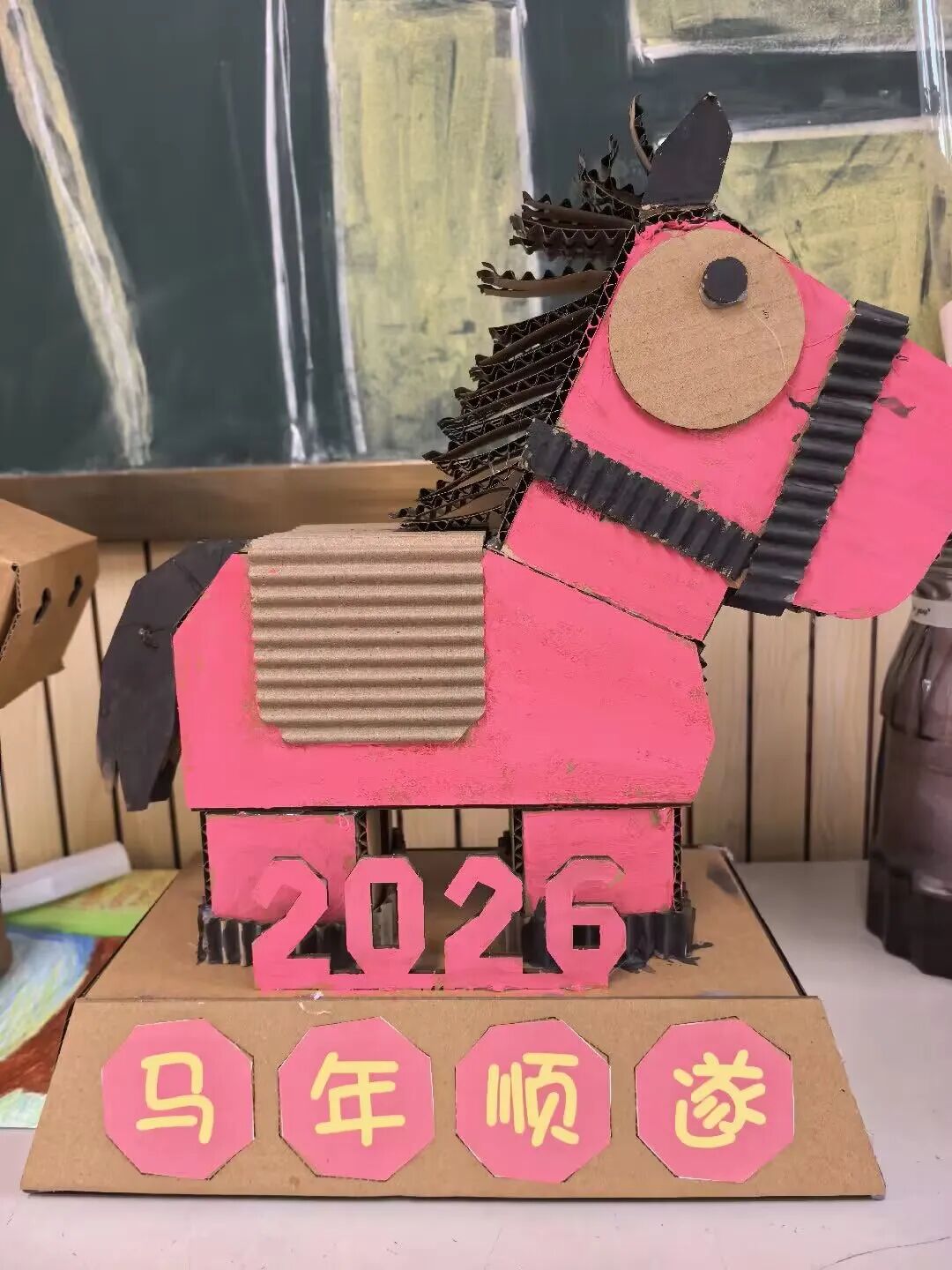 五年级数学节特色活动以“立体图形拼组·小马造型”为创作主题。