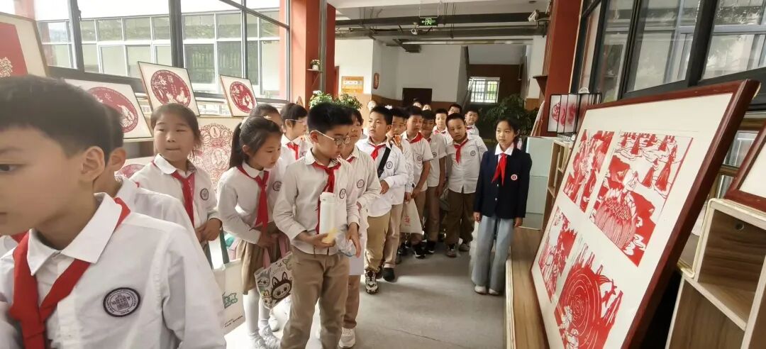 孩子们带着满满的期待出发,一路欢声笑语。抵达后,奥体中路学校剪纸社团的精美作品瞬间吸引了大家的目光,四大名著之一《西游记》中的经典画面以及济南的诗人李清照、解放阁等有代表性的剪纸作品,让同学们连连惊叹,孩子们沉浸式感受到了剪纸艺术的独特魅力。