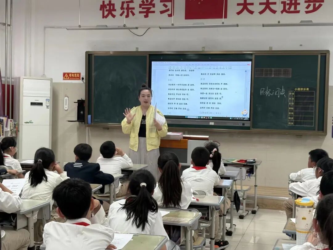 在旋律中传递力量。俊杰妈妈采用循序渐进的方式,带领孩子们逐句学唱。她先示范演唱,强调旋律的起伏与情感的表达,再逐句拆解歌词含义,引导孩子们理解“承风骨亦有锋芒”“护身旁战远方”等句子背后的精神内核。孩子们从最初的轻声跟唱,到逐渐意气风发地齐唱,课堂氛围愈发热烈。清澈明亮的童声与温暖的女声交织,唱出了属于四年级学子的青春朝气。当唱到“前往皓月星辰,初心不忘”“那未来如何登场,有我担当”时,孩子们眼神坚定,声音铿锵,将对未来的憧憬与责任的理解融入每一个音符。