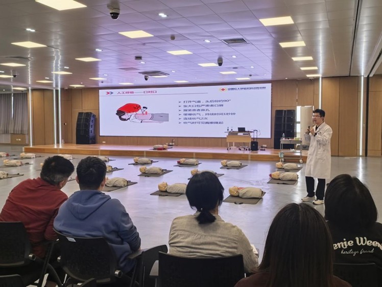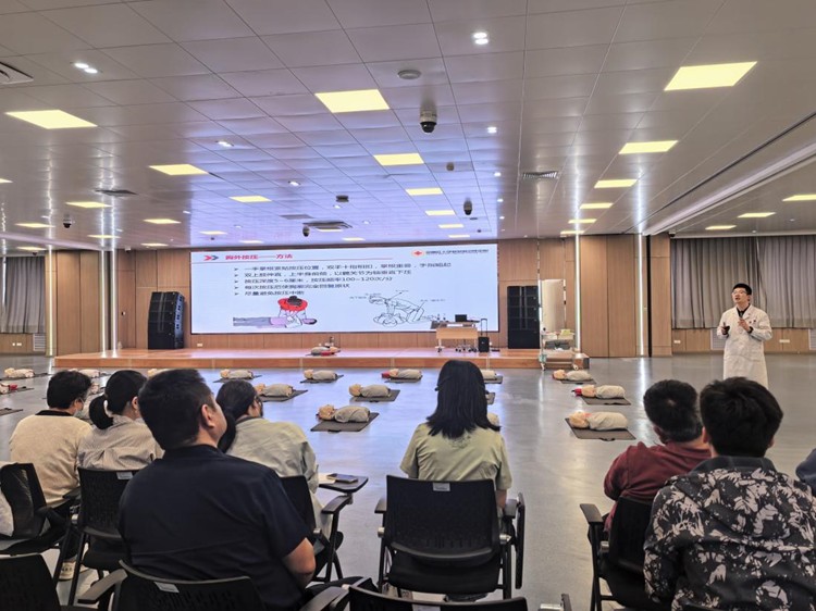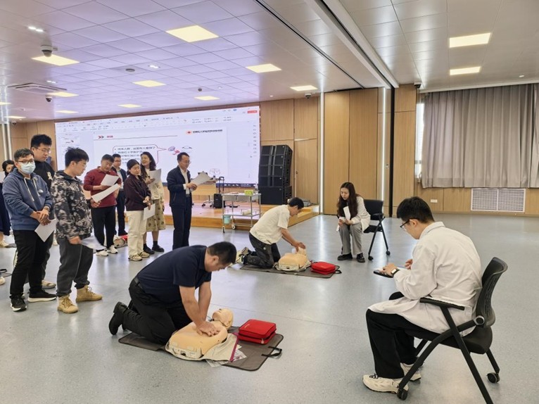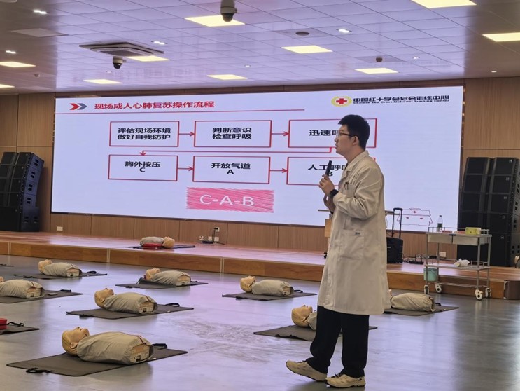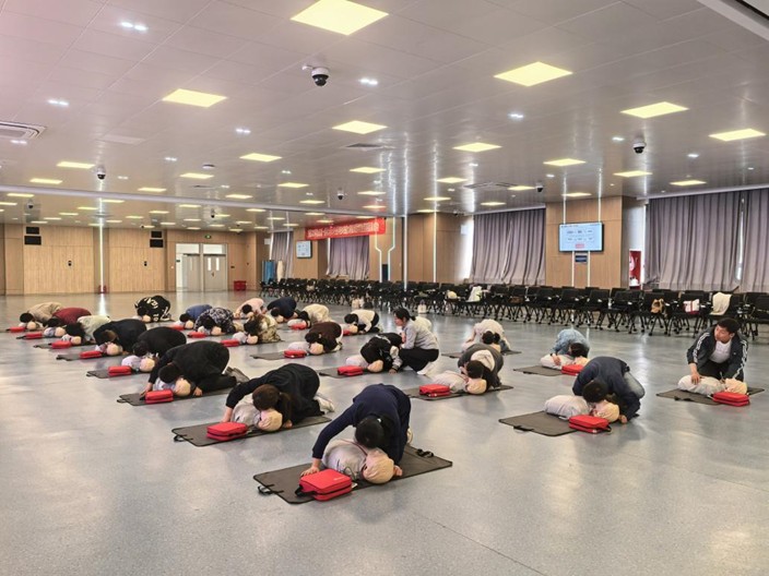 培训现场,专业老师化身“急救领路人”,以生动细致的讲解为班主任们打开急救知识的大门。老师将C-A-B(胸外按压-开放气道-人工呼吸)的核心步骤拆解得清晰透彻,将“黄金4分钟”的急救要义娓娓道来。每一个操作动作,都成为守护生命的关键密码,让在场班主任沉浸式感受急救技能的硬核力量。