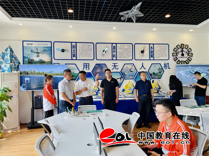 调研组一行先后参观了信息工程学校大疆无人机专班、双创中心、联想专班、数字工厂、VBSE全岗体验中心、智能财税工场专班、网络搭建工作室、融媒体等工作室、实训室和校史馆,并沿途观看了无人机专班实践教学、武术课、健美操训练等现场教学情况。在学校领导班子的介绍中,林宇同志详细了解了学校招生、专业建设、产教融合、人才培养、实习就业等方面的办学思路、举措和所取得的成效,在每个工作室,都在与老师、同学的交流中倾听来自职教一线的声音。