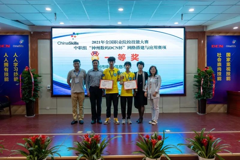 孙春蕾:站在我身边的楚扬老师,是学校的优秀教师,也是济南市2021年最美教师,连续5年楚老师带着我们学生团队参加了全国职业院校技能大赛,获得三金一银一铜的成绩,请楚老师给我们介绍一下在网络搭建专业方面的一些情况。
