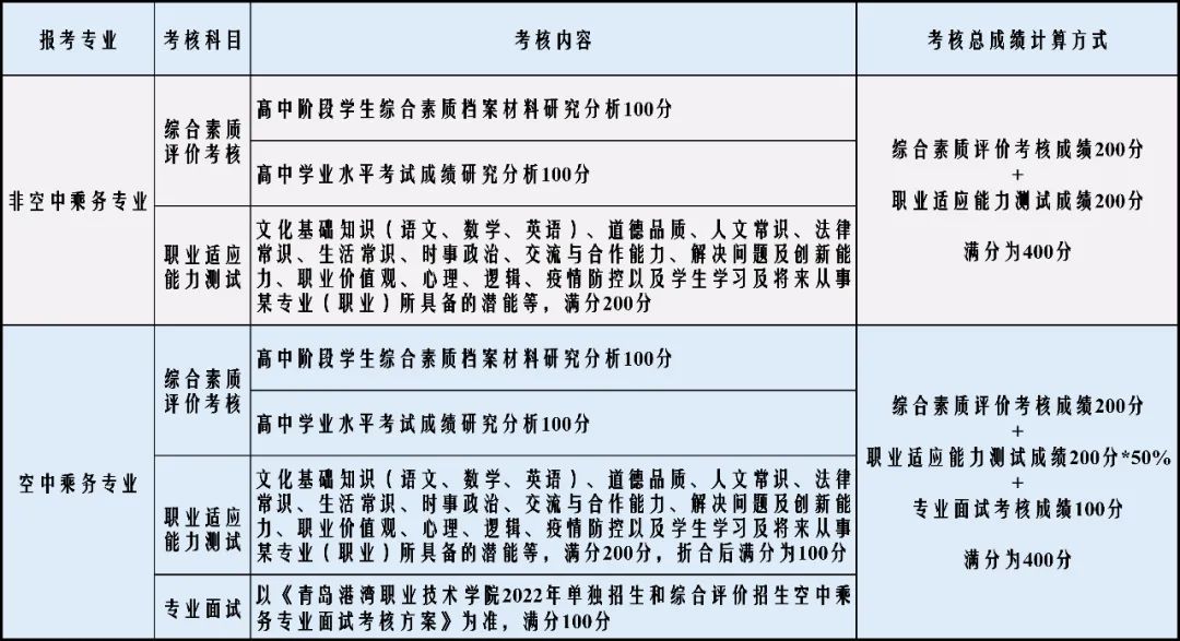 考核形式:青岛港湾职业技术学院2022年单独招生和综合评价招生暂定线下闭卷笔试的形式(其中空中乘务专业增加现场专业面试环节),如有变化请以学院官网最终发布为准。