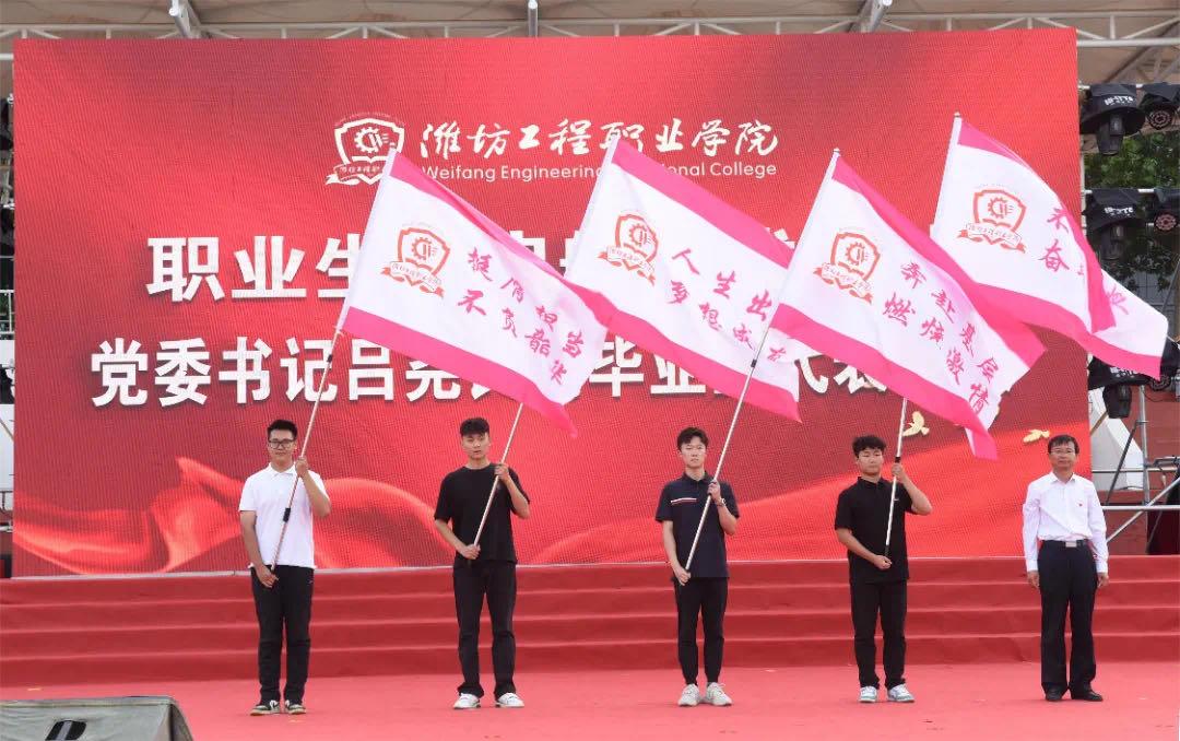 镜头一:6月28日,潍坊工程职业学院2024届毕业生毕业典礼现场,2024届毕业生职业生涯启航暨基层就业出征仪式正在进行。