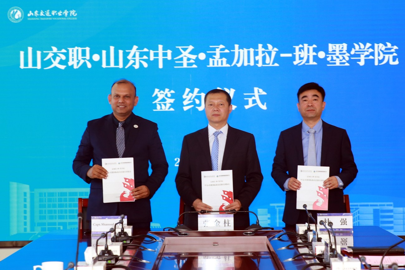 为贯彻落实山东省教育厅《关于实施职业教育海外“班墨学院”建设计划的指导意见》文件精神,推动职业教育海外建设,12月6日,中圣-孟加拉班·墨学院在我校揭牌成立。学校副院长张金柱,孟加拉西部海事学院主席MD SHAMSUL ALAM KHAN,山东中圣国际船舶管理有限公司总经理杜强出席。