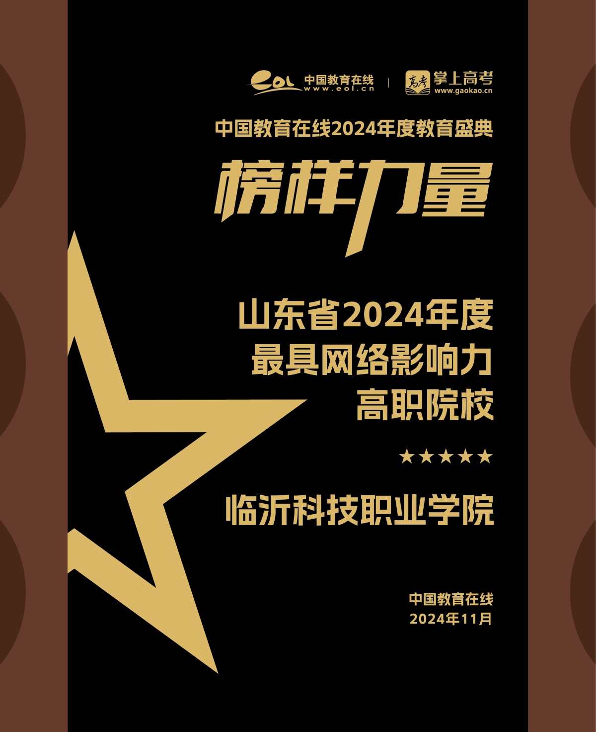 喜讯!临沂科技职业学院获评“2024年度最具网络影响力高职院校”荣誉奖项