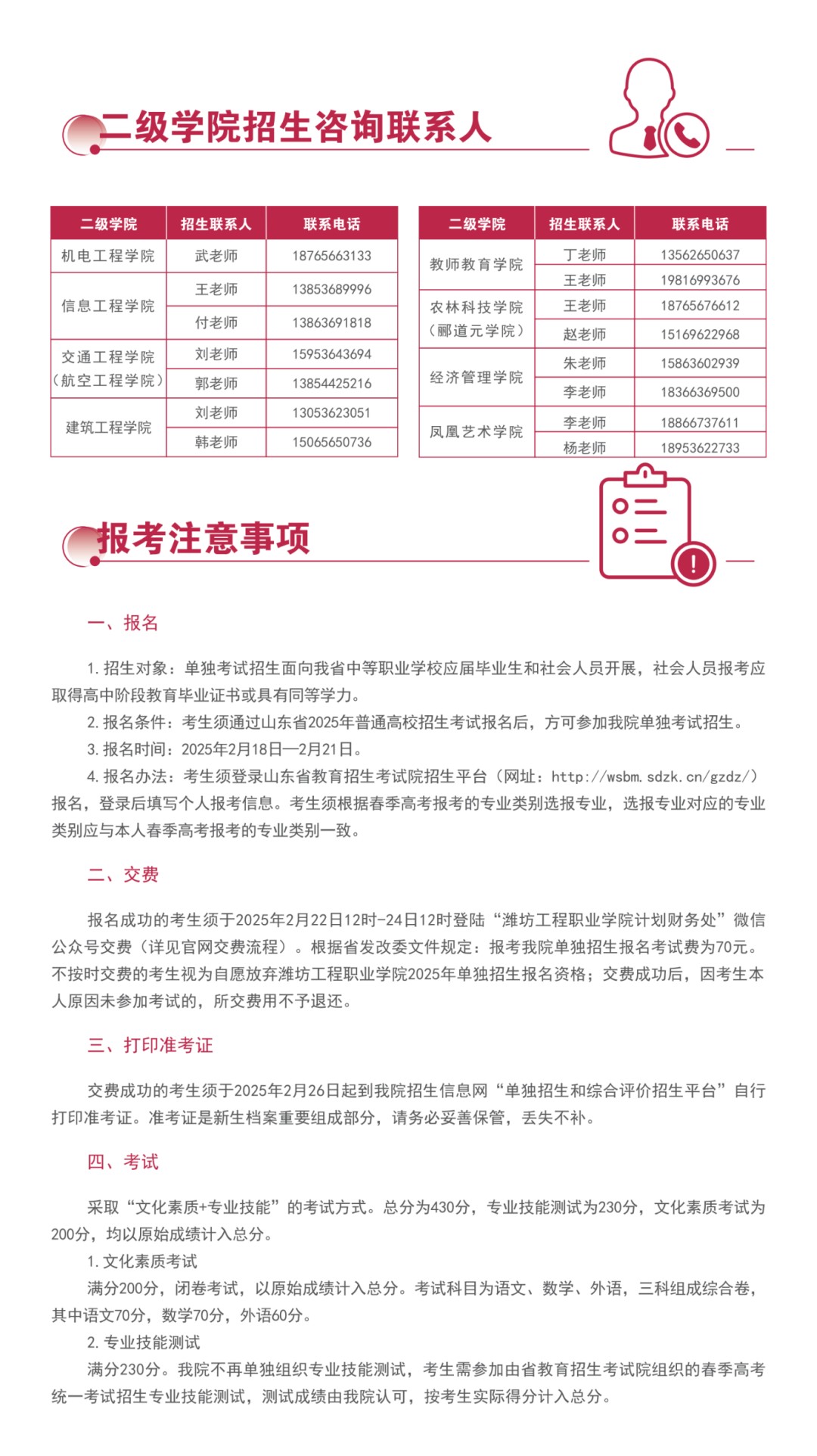 潍坊工程职业学院2025年单独考试招生简章