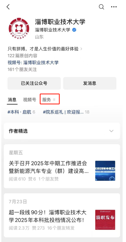 淄博职业技术大学微信公众号