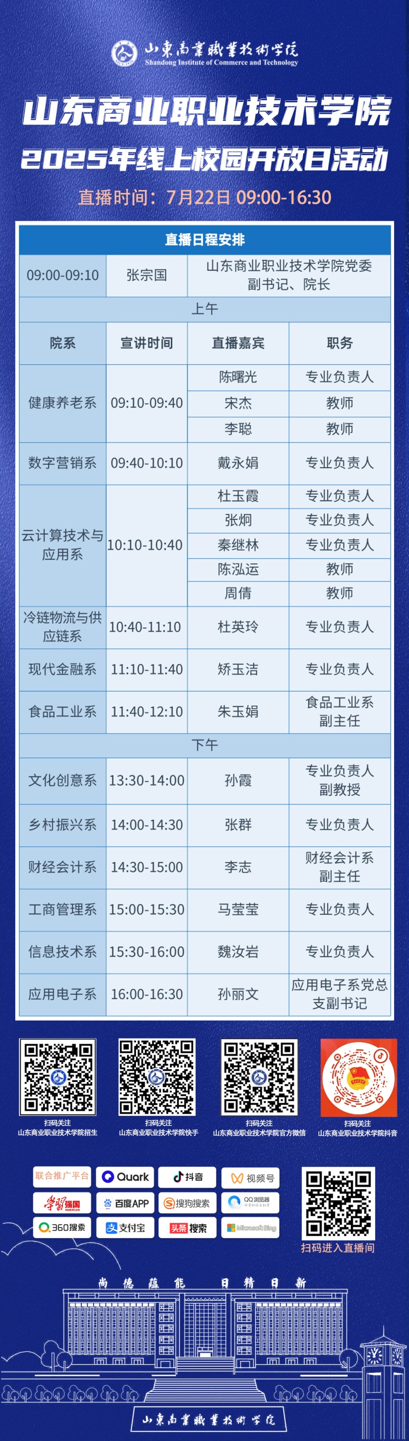 本次线上校园开放日虽已圆满落幕,但山东商业职业技术学院敞开的大门始终向怀揣梦想的学子开放!云端相识,彼此靠近,深入了解,让选择更加坚定。山东商职院以实力和诚意,向未来的大国工匠、能工巧匠发出最诚挚的邀约。