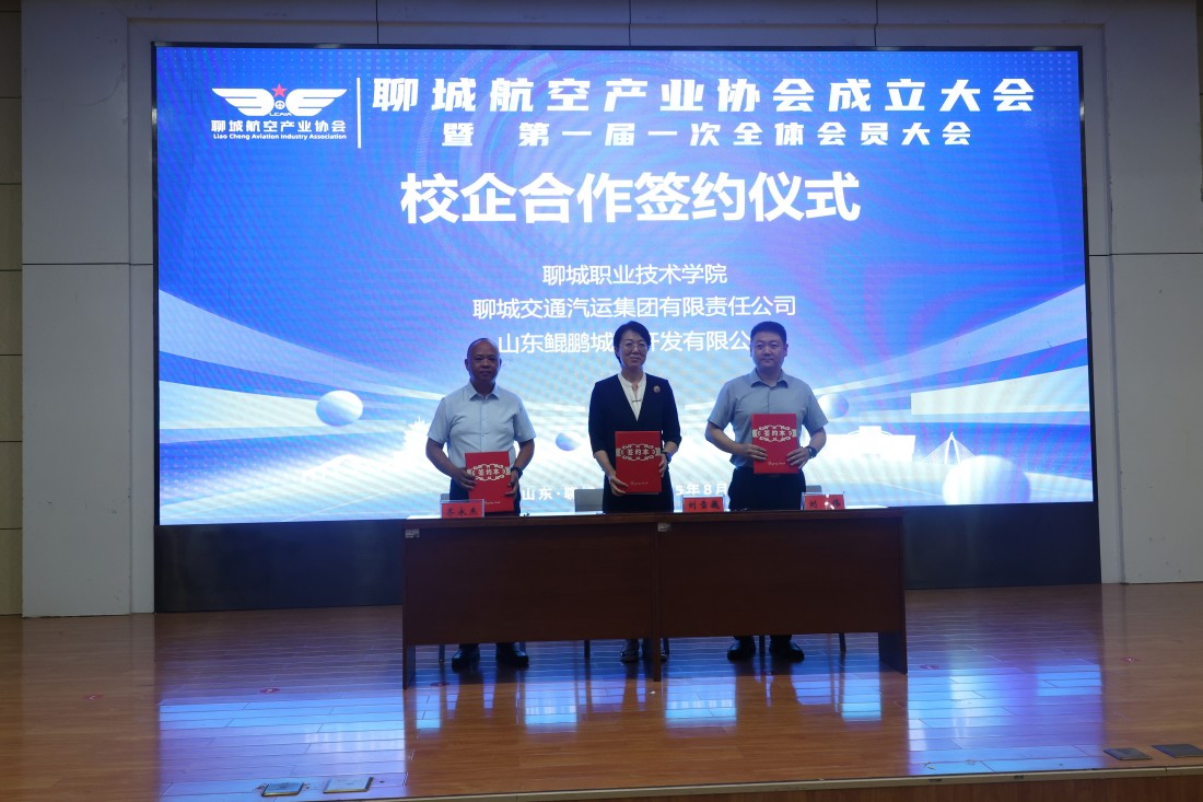 聊城职业技术学院、交运集团、鲲鹏城建公司三方签署校企战略合作协议,将共建“航空产业人才实训基地”,推动教育链与产业链深度融合。聊城市政协副主席、党组副书记张同奇,中国机场协会理事长助理孙卫国,山东航空产业协会理事长孙秀江分别讲话,他们希望协会能够充分发挥平台作用,为聊城市航空产业的快速发展贡献力量。