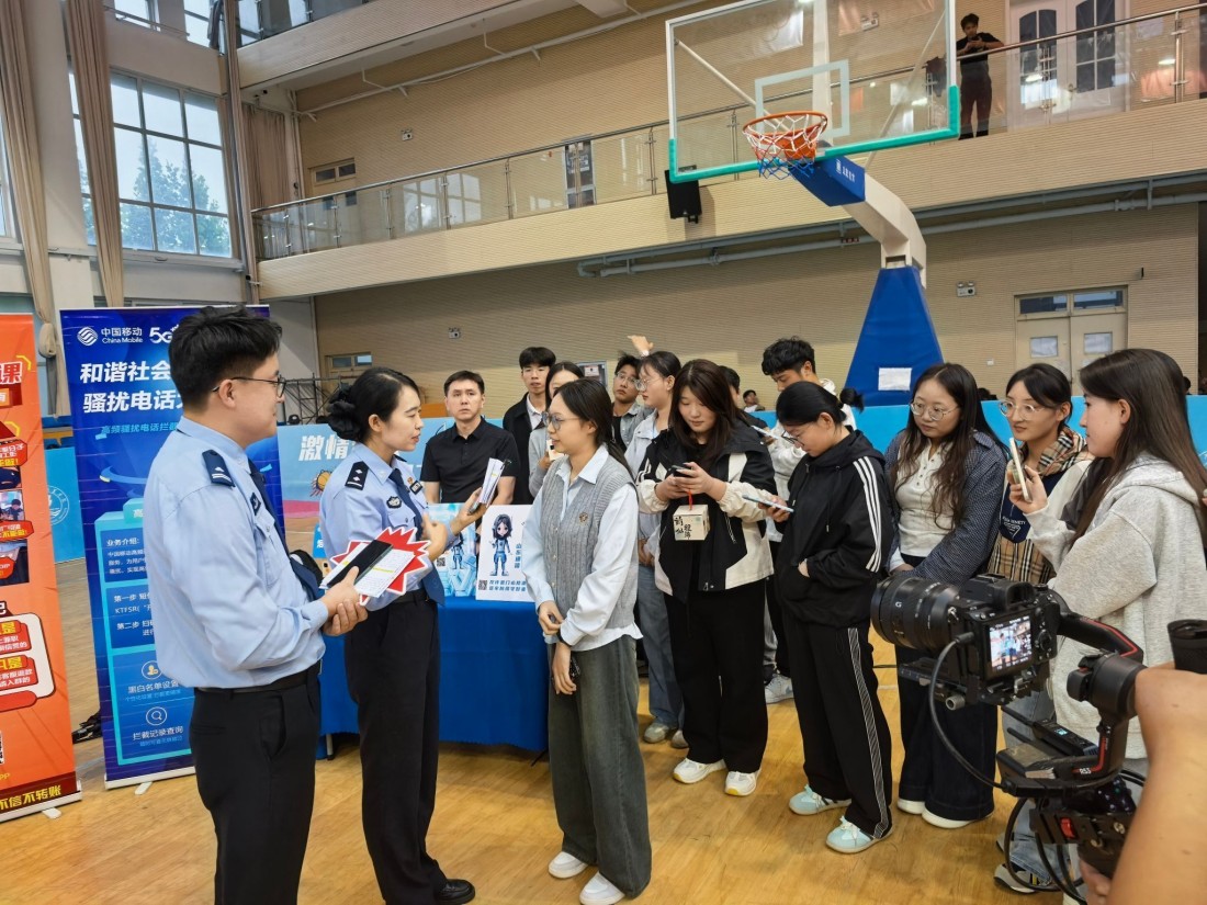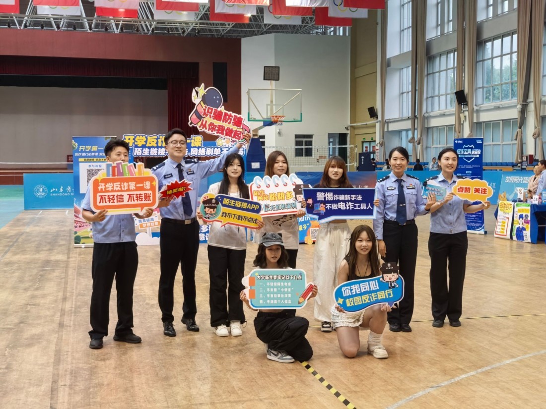 新学期伊始,为增强2025级新生反诈防骗意识与能力,织牢织密反诈安全网,9月19日下午,山东商务职业学院邀请烟台市公安局反诈中心民警到校,开展以“防骗你我他,全民共反诈”为主题的开学反诈第一课,通过反诈直播进校园活动,向2025级新生讲述电信网络诈骗典型案例和反诈防骗方法。