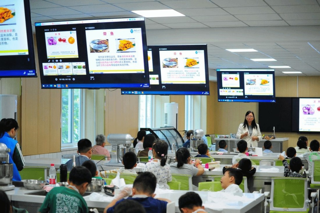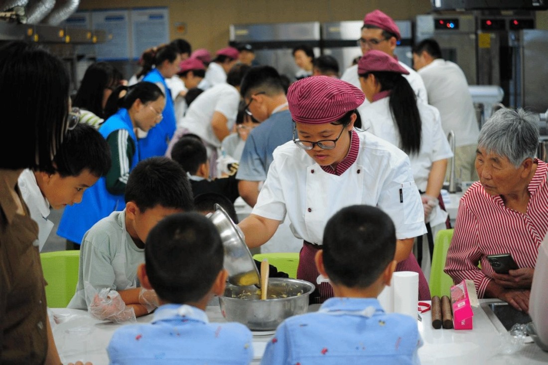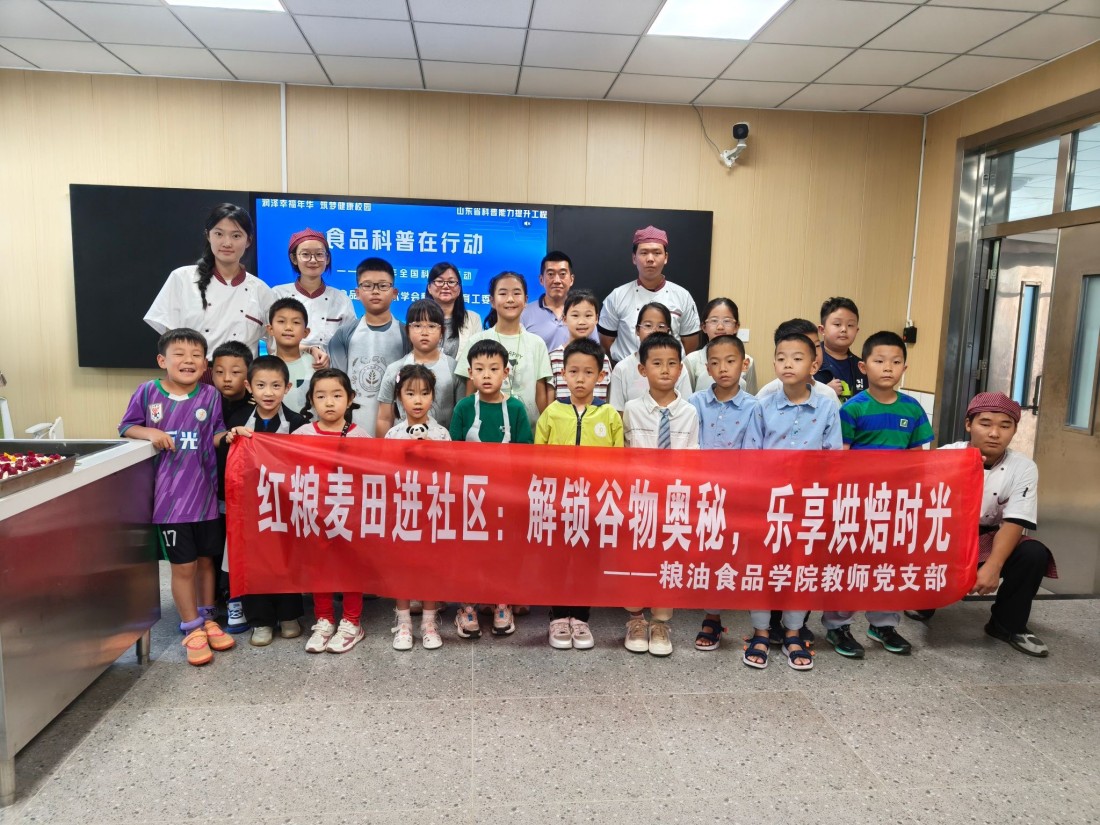 实践体验环节,“红粮麦田”品牌的育人特色尽显。党支部特别邀请烟台大学彭新颜教授开展食品营养科普讲座,彭教授用通俗易懂的语言讲解常见食物的营养成分,以及如何进行合理膳食搭配等实用知识,引导孩子们从营养角度重视食物的价值。学校粮油食品学院于海洋副教授则带领孩子们分组参与“我是科学烘焙小能手”实践课——称量面粉、调配食材,制作降糖馒头、烘焙点心,手把手教大家掌握制作技巧。当孩子们捧着自己亲手做的营养美食时,不仅收获了成就感,更在实践中践行了“红粮麦田”“知行合一护粮安”的理念。