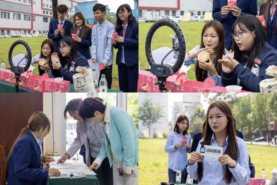 会场外,直播带货同步开展。山东电子职业技术学院30余人师生主播团队成为主力,在抖音、快手等平台开设直播间,向全国网友推介三涧溪村玉米、绿茶、瓜果等碳中和农产品及平阴玫瑰花饼等产品。学生将课堂所学的直播话术、镜头表现、流量运营等技能应用于实战,实现理论与实践融合,专业素养获现场企业与观众认可。