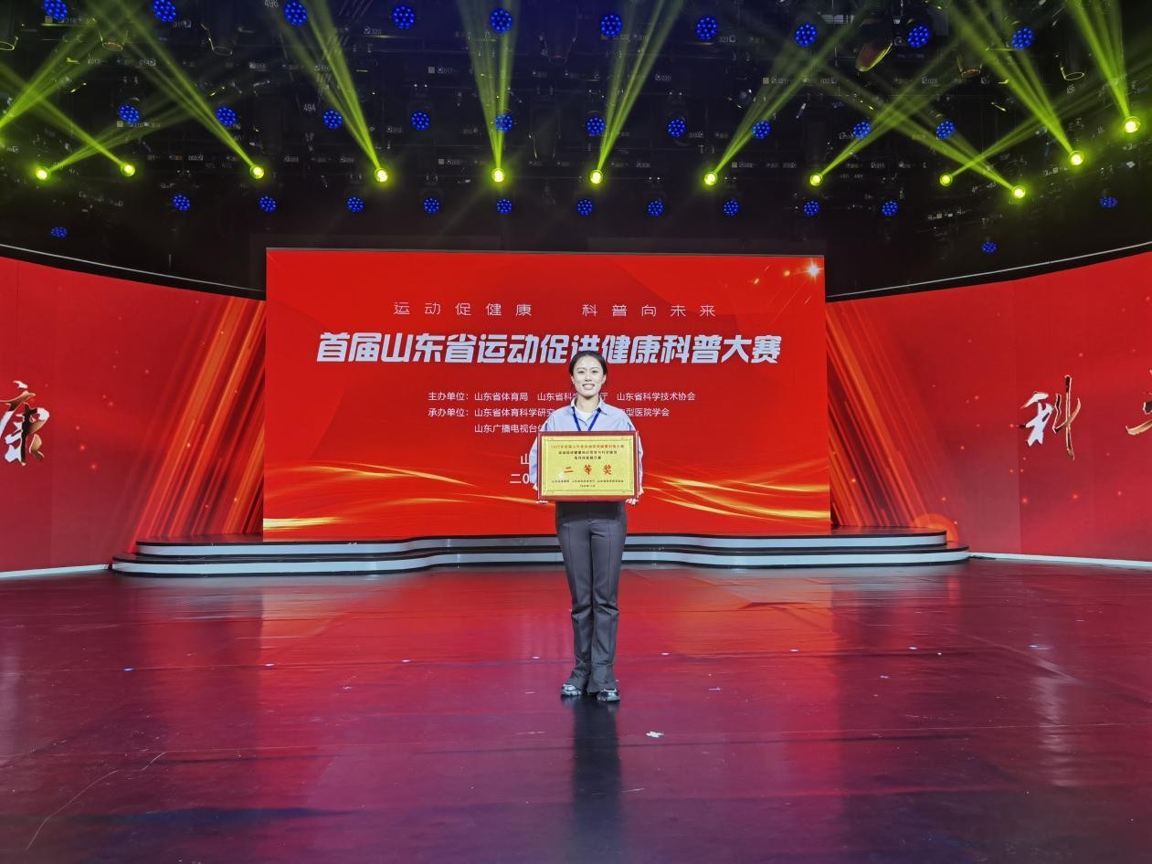 近日,由山东省体育局、山东省科学技术厅、山东省科学技术协会联合主办的首届山东省运动促进健康科普大赛决赛在山东广播电视台圆满结束。学院君山书院教师徐悦凭借扎实的专业能力脱颖而出,成功斩获山东省运动促进健康知识与科学健身指导技能竞赛二等奖。