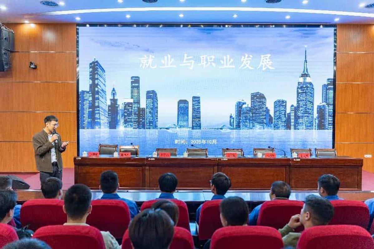 颁奖仪式后,石横特钢人资部相关负责人围绕企业人才培养体系、岗位晋升机制及职业发展路径展开介绍,为学生清晰解读企业对技术技能人才的选拔标准与培育模式;石横特钢首席技师、我校2001届毕业生滕德强结合自身钢铁领域实践,以技术攻关、工艺优化案例,解读“专注坚守、精益求精”的工匠精神,传递行业前辈的专业积淀;石横特钢员工、我校优秀毕业生代表弭聪聪围绕“校园到职场”成长经历,鼓励同学们在校期间多参与技能竞赛、创新实践,培养精益求精的职业素养。