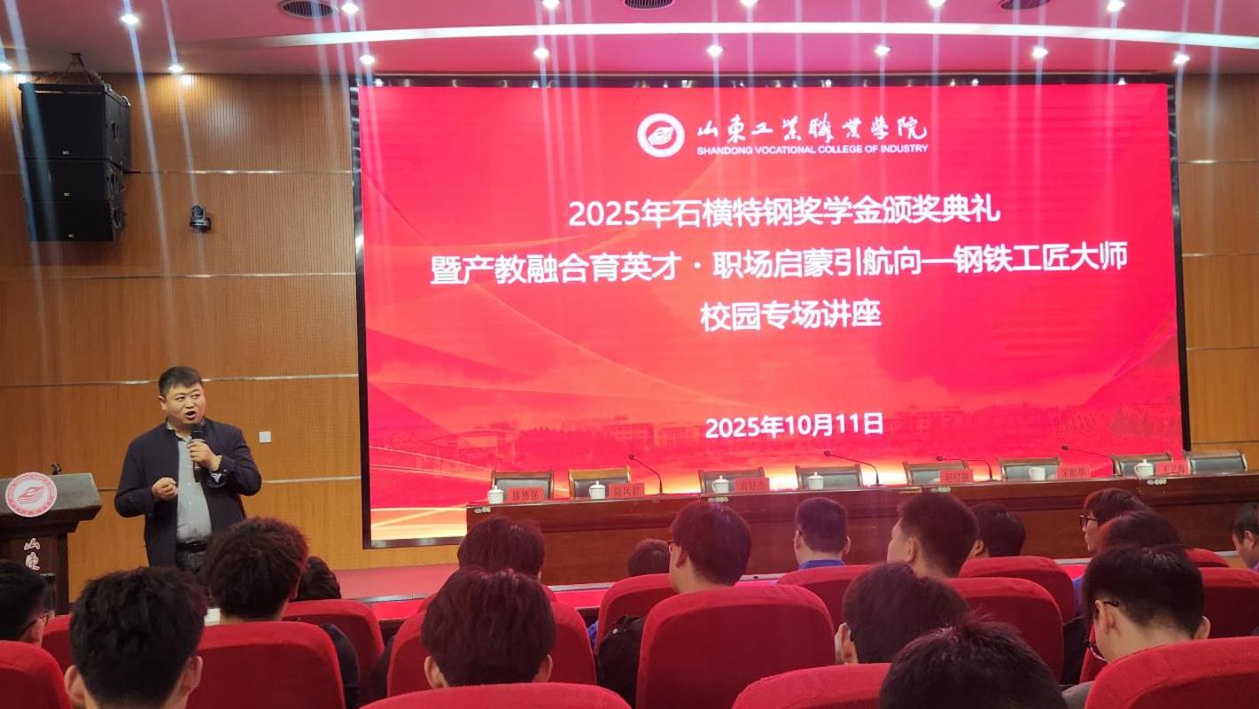 山东工业职业学院举办2025年石横特钢奖学金颁奖典礼暨钢铁工匠大师校园专场讲座