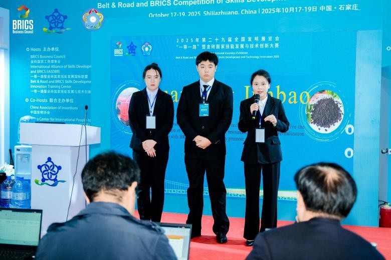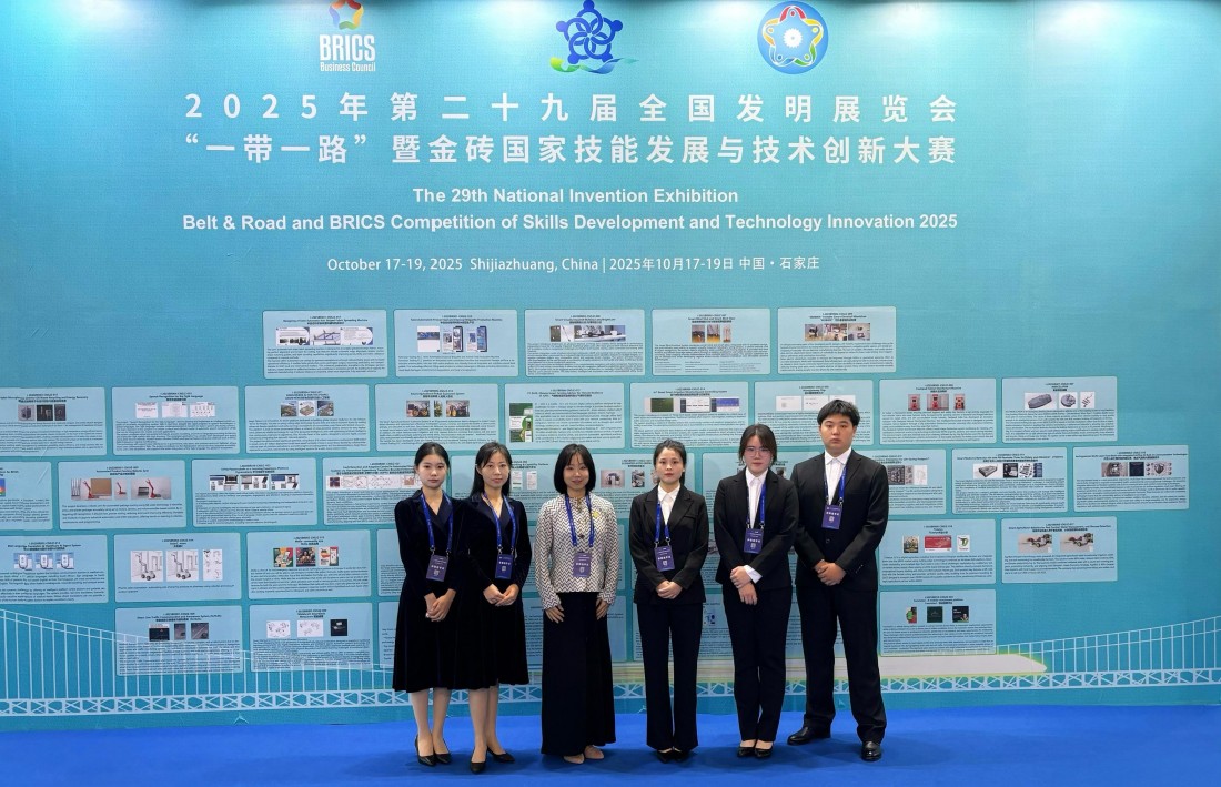 10月19日,2025年第二十九届全国发明展览会“一带一路”暨金砖国家技能发展与技术创新大赛在河北省石家庄市国际会展中心圆满落幕。枣庄职业学院化工与制药系参赛团队凭借扎实的专业功底和突出的创新能力脱颖而出,最终荣获二等奖一项、三等奖一项,为学院赢得了国际声誉。