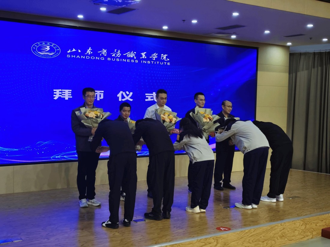 开班仪式现场还举行了企业导师聘书颁发与拜师仪式。孙玉林为受邀的企业导师逐一颁发聘书,现场工程师班学生代表向企业导师献上鲜花,随后全体学生以庄重的拜师礼向企业导师致敬。这一“授”与“拜”的互动环节,既承载着师者传道授业解惑的责任担当,也彰显了学子尊师重道、精技笃行的坚定信念,生动诠释了现代职业教育“师徒传承、德技并重”的育人理念,为校企协同育人奠定了坚实基础。