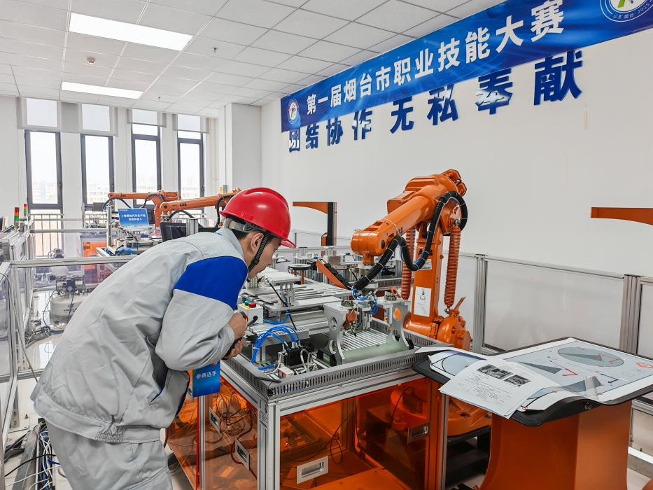 以“赛”育人,是烟台职业学院培育技能精英的另一“法宝”。学校创设了“多梯次全覆盖”技能大赛体系,从校级竞赛到省级、国家级赛场,层层递进成长通道。近年来,师生累计获国家级奖项200余项、省级奖项1100余项、各类“双创”大赛奖项160余项,打造了全省领先、全国知名的职业院校技能大赛“烟职品牌”。截至目前,学校已承办市级以上职业技能大赛近40场次,参赛人数超7000人,培养技能大师、能工巧匠3000余人,同时培育工业机器人等360余个精品培训项目,年培训技能人员超过12万人次,社会服务到款额全年预计超过1亿元,真正实现“以赛促学、以训赋能”。