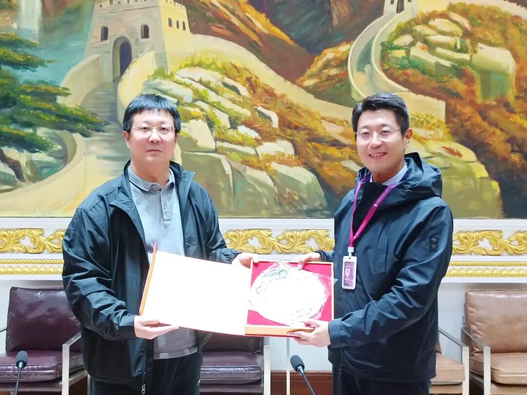 会谈结束后,中国教育在线向山东圣翰财贸职业学院赠送定制文创礼物。