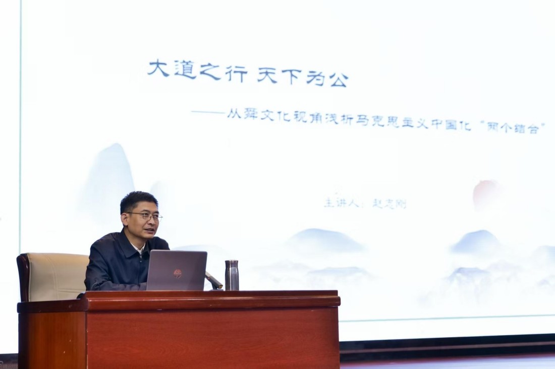 开班仪式结束后,赵志刚为本次培训班讲授了以《大道之行 天下为公——从舜文化视角浅析马克思主义中国化“两个结合”》为题的开班第一课,他从舜文化的核心内涵出发,深刻阐释了其与马克思主义基本原理的内在契合点,清晰梳理了舜文化在马克思主义中国化“两个结合”中的历史作用与时代价值,让同学们对“两个结合”的文化根基有了全新的理解和认识,也为同学们今后更好地传承中华优秀传统文化、推动马克思主义中国化时代化提供了宝贵的思路。
