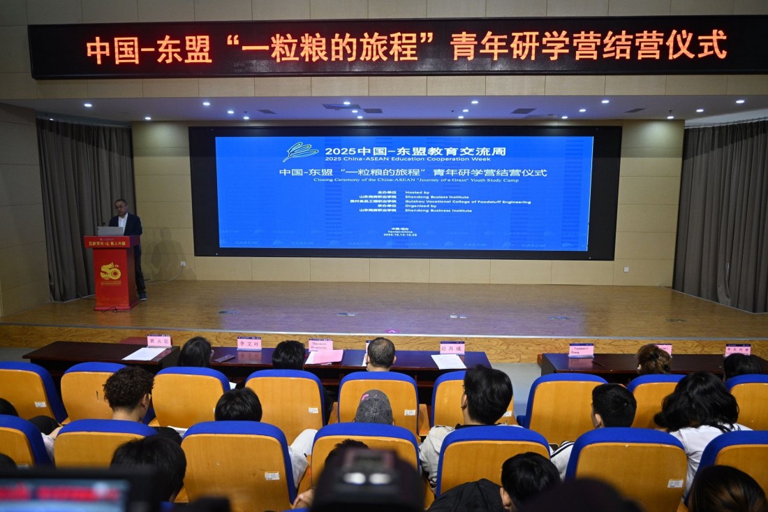 10月26日上午,2025中国—东盟“一粒粮的旅程”青年研学营结营仪式在山东商务职业学院举行。本次研学营由学校及贵州食品工程职业学院联合主办,自10月14日开营至26日结营,历时13天,中泰师生以“粮”为纽带完成全部研学任务,为跨国教育交流与产业合作写下生动注脚。