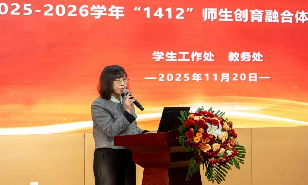 仪式在温情洋溢的开场视频《我们的第一年》中拉开序幕。视频生动回顾了过去一年“1412”师生创育融合体从理念萌芽到实践落地的探索历程,展现了导师的倾情引领与学生的勇敢探索,绘就了一幅师生携手、教学相长的动人画卷。