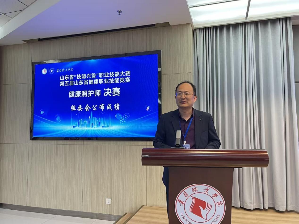 近日,山东省“技能兴鲁”职业技能大赛——第五届山东省健康职业技能竞赛“健康照护师”赛项在枣庄职业学院圆满闭幕。学院党委副书记、校长梁家和,党委委员、副校长刘希震,省健康管理协会副秘书长付新龙,裁判组组长沈荣等出席了闭幕式。