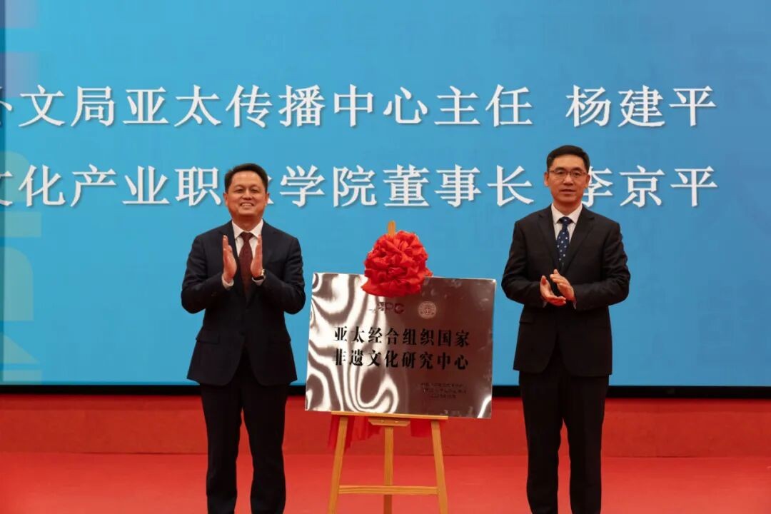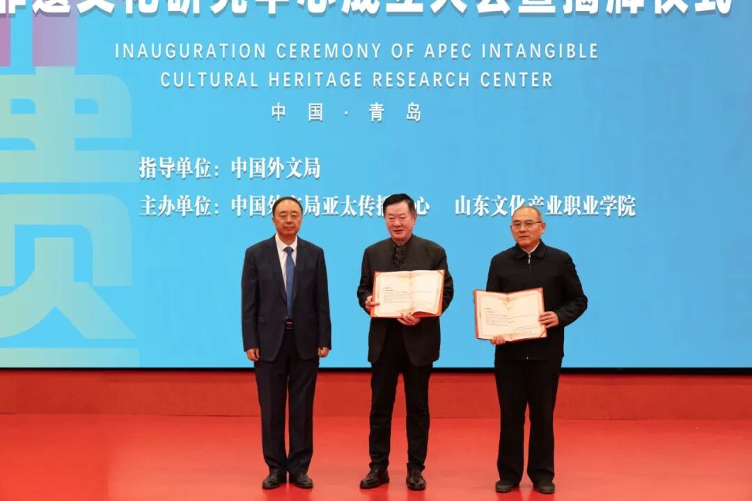 中国外文局亚太传播中心主任杨建平、山东文化产业职业学院董事长李京平共同为“亚太经合组织国家非遗文化研究中心”揭牌,标志着亚太地区非物质文化遗产的保护、传承与创新工作开启崭新篇章。