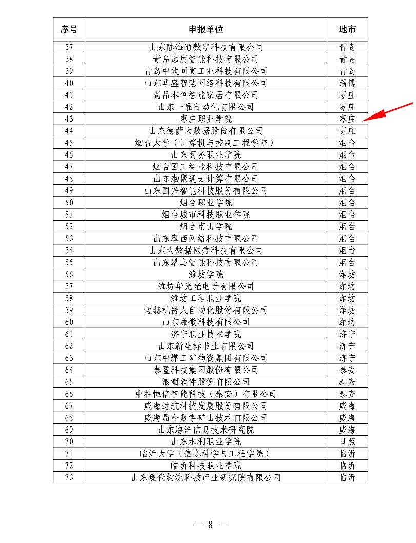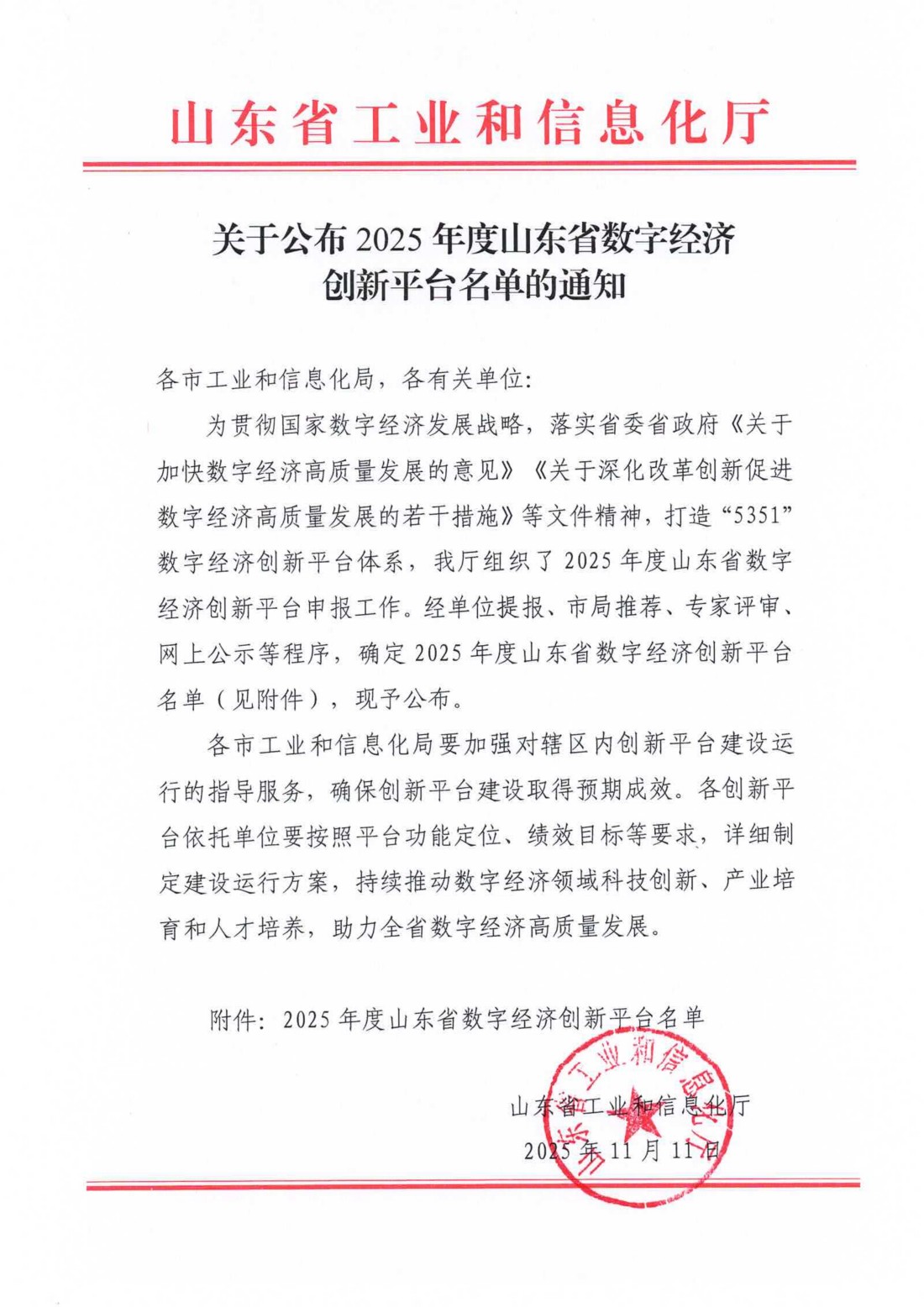 枣庄职业学院两项目成功入选2025年度山东省数字经济创新平台名单