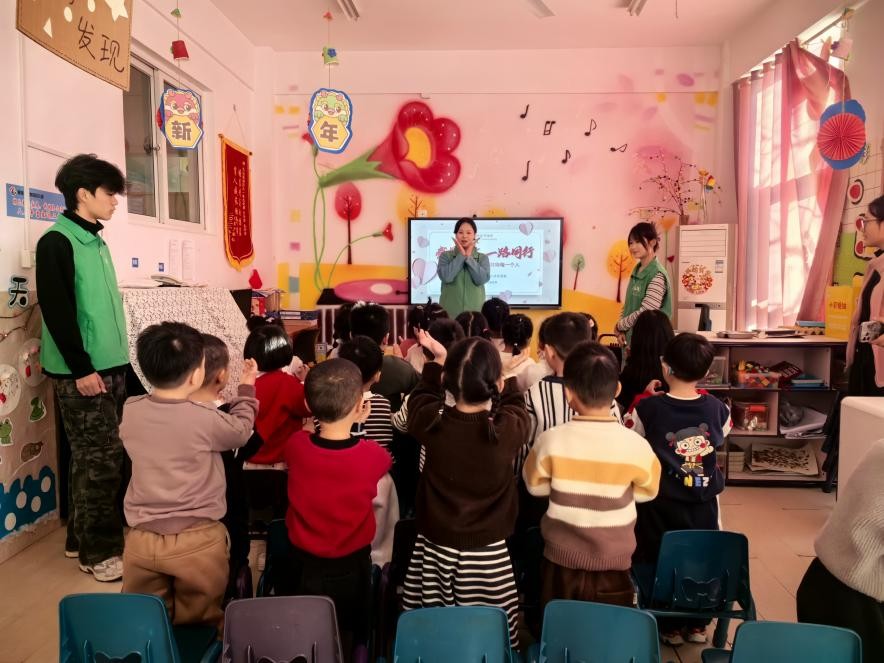 随后的手势舞教学将现场气氛推向高潮。志愿者们选择了温情歌曲《听我说谢谢你》,并将动作设计与自然、成长的主题相结合。孩子们伸出稚嫩的小手,在美妙的旋律中,用最纯真的肢体语言,表达对父母、老师的感谢。
