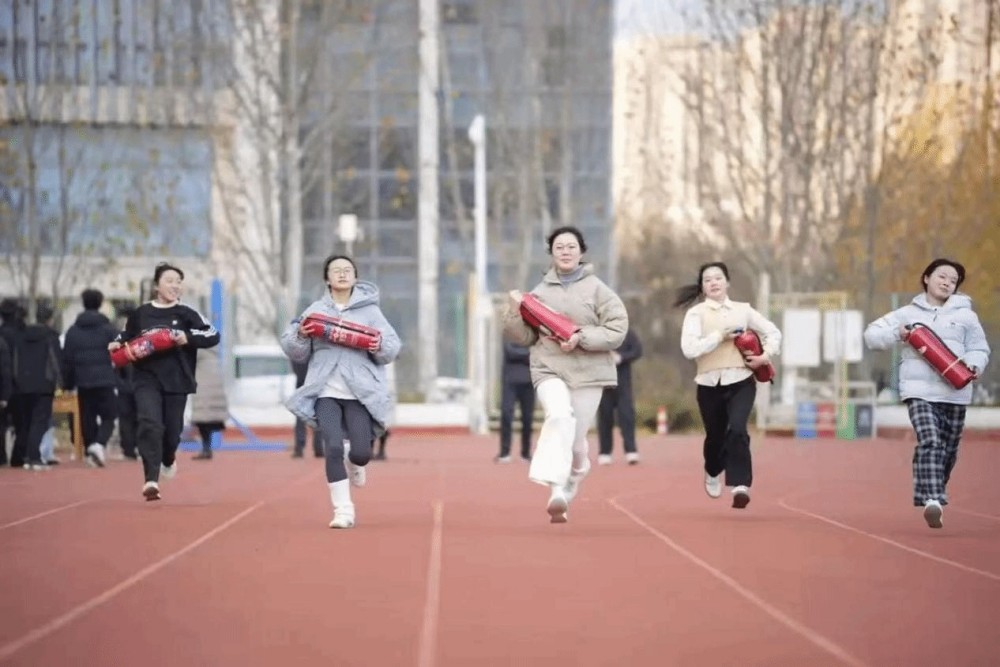 本次运动会汇聚各二级学院代表队,每队由15名师生混合编组,形成“师生协同、专防结合”的参赛模式。赛事创新采用“综合赛道计时赛制”,通过抽签确定顺序,围绕灭火器冲刺跑、心肺复苏术、担架竞速救援、伤情判断与包扎四大实战模块展开激烈角逐。赛场上,队员们沉着应对、紧密协作:灭火救援环节精准迅速,心肺复苏操作严谨规范,担架转运平稳高效,创伤包扎科学到位。场边同步设置的急救知识科普区与互动体验区,通过情景模拟、有奖问答等形式,吸引众多观众参与,营造出“人人关注、人人学习、人人参与”的浓厚安全文化氛围。