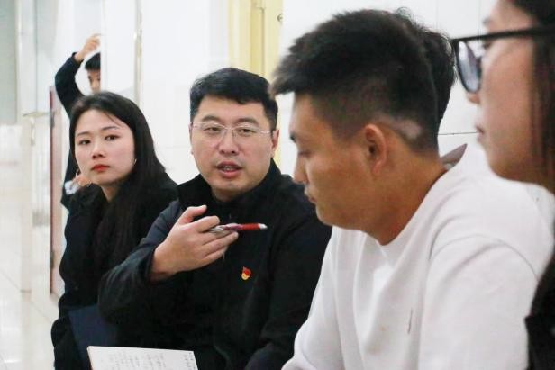 在学生社区的走廊与宿舍中,一场汇聚院校两级育人力量的“移动党课”与“谈心谈话”生动展开。学生处副处长赵冲与学院副院长李鹏飞与同学们围坐交谈,细致了解新生入学后的思想动态与适应情况,在亲切关怀中融入价值引领。李鹏飞副院长结合日常走访中积累的鲜活案例,与学生分享成长体悟,让思政教育更贴近实际、更具温度。学生处宿管科科长赵建宁、学管科长王笑宁与辅导员们聚焦学生实际需求,从宿舍安全、环境卫生到学业规划、人际交往,给予细致指导。这场在回廊与室内的行走与对话,不仅体现了学院常态化、制度化的关怀机制,也展现了学校职能部门深入一线、服务基层的扎实作风,推动思政工作在学生社区实现浸润式滋养与联动式渗透。
