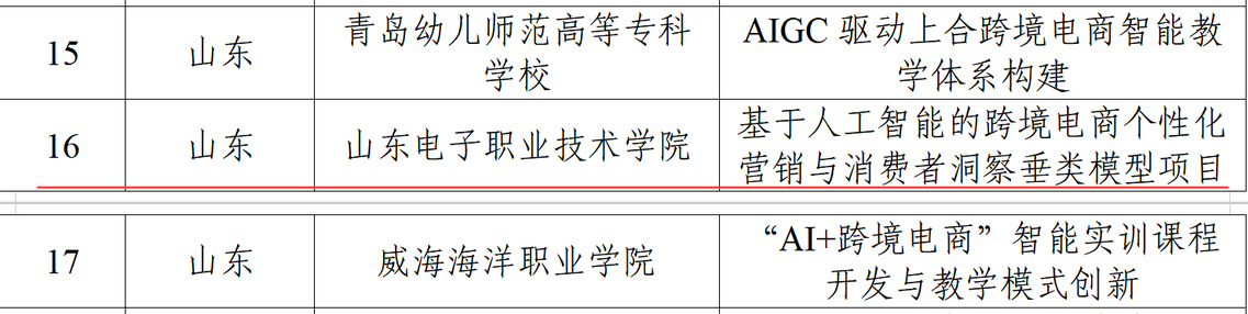近日,教育部职业教育发展中心公布职业教育专业领域垂类模型建设项目(第三批)名单,山东电子职业技术学院商务管理系申报的“基于人工智能的跨境电商个性化营销与消费者洞察垂类模型项目”成功入选。