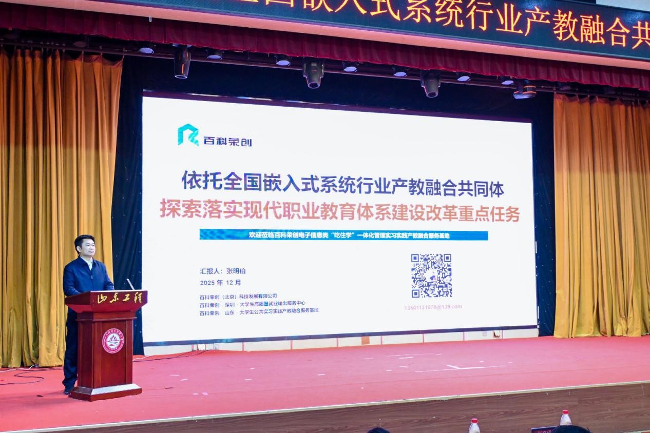 近日,全国嵌入式系统行业产教融合共同体2025年工作会议在济南召开。会议以“汇聚教育资源要素、创新产教融合范式、构建嵌入式系统行业发展新生态”为主题,紧密对接产业发展战略需求,旨在深化校企合作,促进教育链、人才链与产业链、创新链有机衔接。来自全国20余个省市的80余所高校、行业领军企业、科研院所及行业协会的200余位代表齐聚一堂,共同研讨共同体发展路径。山东电子职业技术学院副院长王毅东及计算机与软件工程系负责人、骨干教师参加会议。