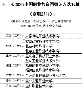 近日,第九届《中国职业教育百强》在北京大学发布,其中高职院校、中职学校各50所。我校入选2025年“中国职业教育百强”高职50强。学校党委副书记、校长梁家和在发布会现场发表贺词。