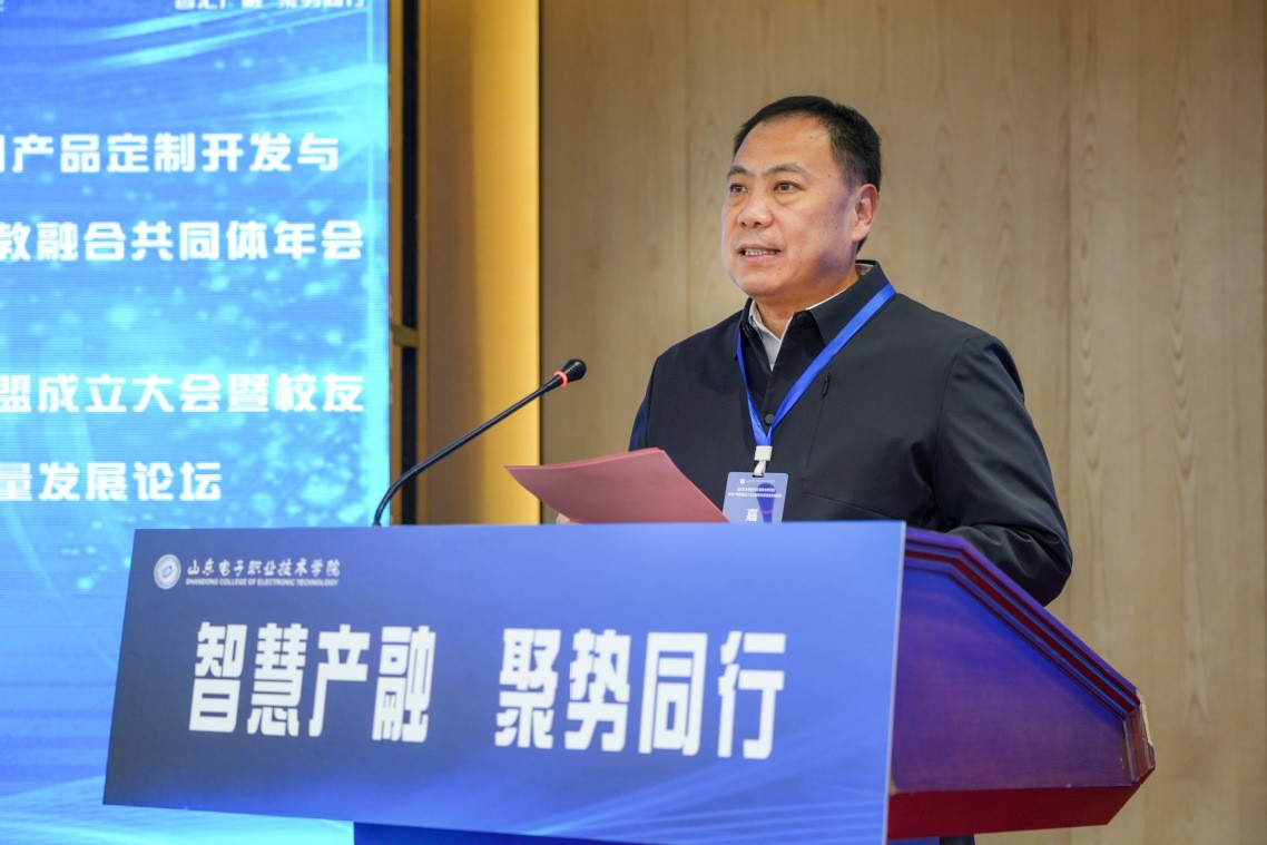 12月27日下午,山东电子职业技术学院在济南颐正大厦举办首届校友高质量发展论坛。济南市投资促进局二级巡视员、市委人才办公室副主任吴涛,山东校企合作发展研究院院长郭钦贤,山东省产教融合促进会副会长、秘书长路士超,山东电子职业技术学院院长张建臣,山电校友产教联盟理事长王培杰等相关领导和嘉宾,与来自全省的150余位校友和企业代表齐聚一堂,围绕学校高质量发展的新思路、新模式、新举措展开深入探讨。